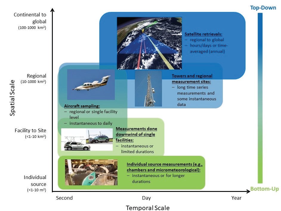 Examples of methane measurement platforms operating across a variety of spatial and temporal scales (NASEM, 2018)