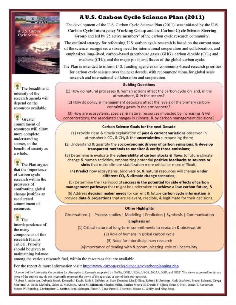 A U.S. Carbon Cycle Science Plan (2011): A Report of the Carbon Cycle Science Steering Group and Subcommittee, Anna Michalak, Rob Jackson, Gregg Marland, Chris Sabine, Co-Chairs.